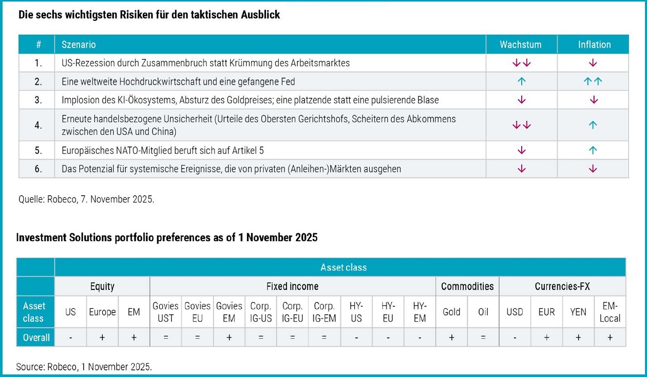 Im Anleihenbereich bevorzugt Robeco angesichts der Erwartung höherer Renditen am langen Ende kürzere Durationen. Die High-Yield-Spreads bleiben eng und begrenzen das Aufwärtspotenzial, während Anleihen aus Schwellenländern einen angemessenen Carry bieten. Industriemetalle könnten durch die zyklische Dynamik einen Aufschwung erleben, während Gold von Inflation und Fed-Politik gemischte Signale erhält.