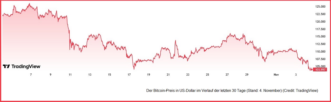 Kurzfristig bleibt die Lage angespannt. Solange die Zins- und Arbeitsmarkterwartungen in den USA unklar sind, dürfte der Markt volatil bleiben. Sollte die FED jedoch ein moderateres Signal senden oder die Arbeitsmarktdaten eine Abschwächung zeigen, könnte sich das Blatt rasch wenden. Eine technische Gegenbewegung – möglicherweise Richtung 110.000 US-Dollar bei Bitcoin – wäre dann realistisch. Historisch betrachtet hat der November oft eine Trendwende eingeläutet, wenn der Markt zuvor überverkauft war. Ein mögliches Wiederaufleben der „Santa-Claus-Rallye“ bleibt also ein Szenario – vor allem, wenn die Liquidationsdynamik abnimmt und neue Kapitalzuflüsse einsetzen.