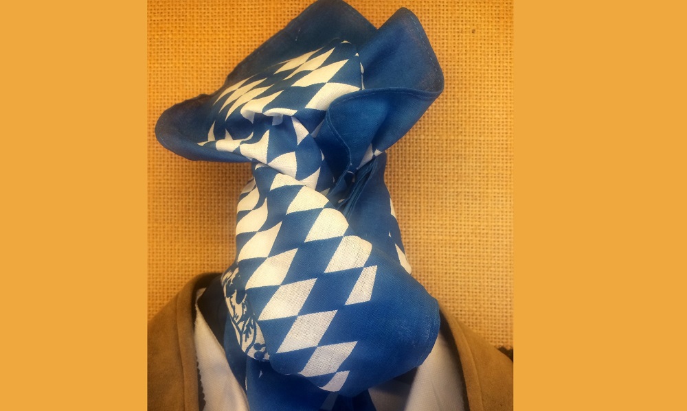Denn gefühlt trägt inzwischen jeder zweite männliche Besucher des Oktoberfests ein Halstuch – entweder mit »typischem Wiesn-Outfit« oder gar als alleiniges Merkmal des Wiesngangs. Nun ist es jedem selbst überlassen, in welcher Form er sich verkleidet, um im desolat-betrunkenen Zustand von Verwandten, Bekannten und Freunden nicht erkannt zu werden. Trotzdem wollen wir dem Halstuchtragen und der Verbindung mit Tracht einmal näher auf den, dem Halse nahen, Zahn fühlen, auch wenn wir wahrscheinlich letzten Endes scheitern werden mit dieser Ursachenforschung, ähnlich wie im vorigen Jahr beim rotkarierten Hemd.