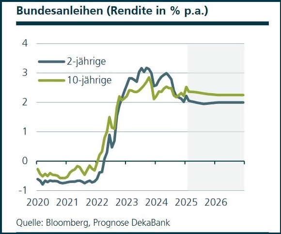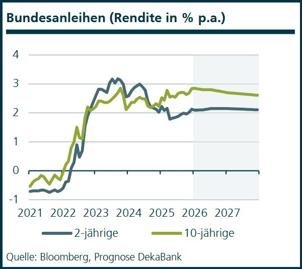Insofern bilden stabile Inflations- und Leitzinserwartungen ein Gegengewicht zum steigenden Angebot an Staatsanleihen, und der immer noch hohe Anlagebedarf sollte mit der Zeit zu einem leichten Rückgang der Renditen am langen Ende führen