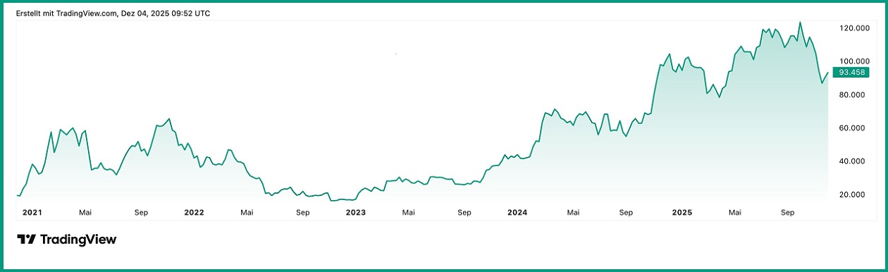 Bitcoin Preis Entwicklung der letzten fünf Jahre, Quelle: TradingView