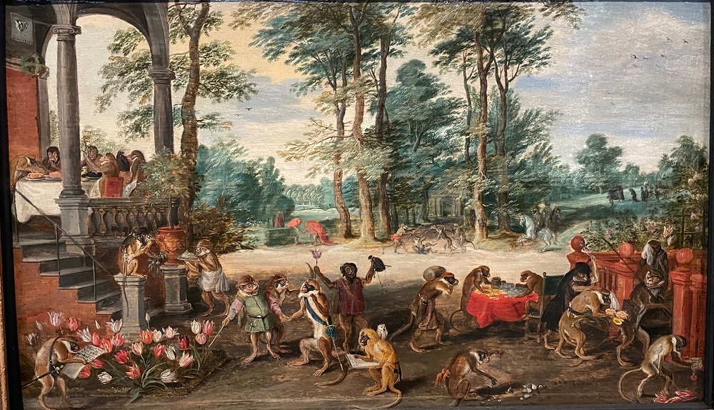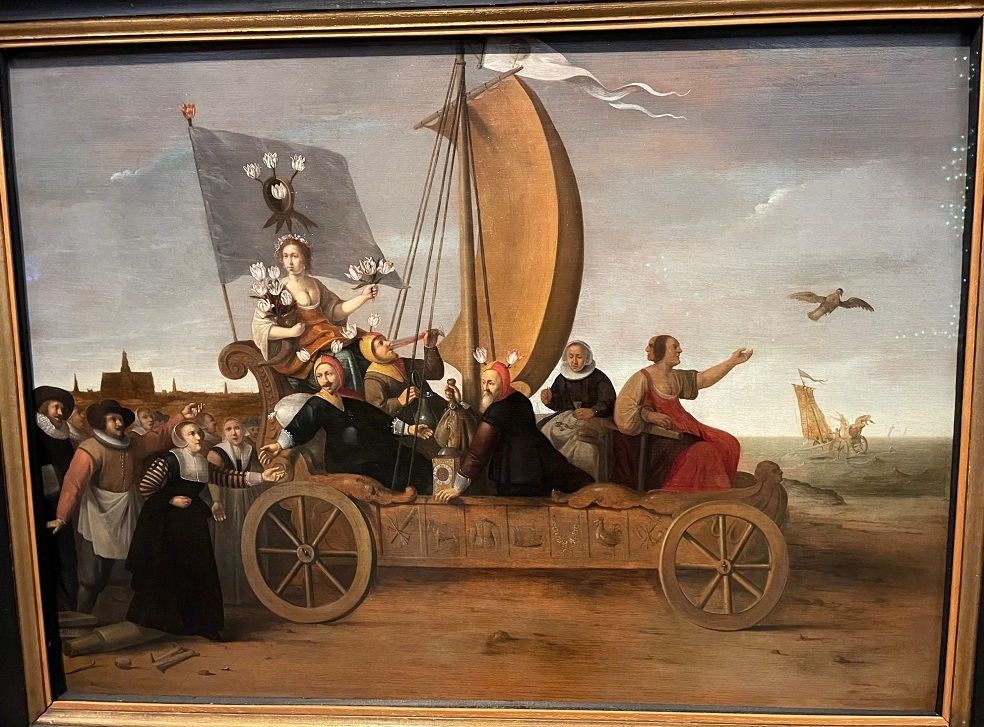 Als Börsianer kennen wir den ersten dokumentierten Hype um Tulpenzwiebeln im 17. Jahrhundert. Er wird immer gerne dann zu Rate gezogen, wenn es um Börsenpsychologie und die blinde Gier der Investoren geht, die ohne Nachzudenken in Dinge (fast) ohne Wert investieren. Ein Verhalten, das uns heute genauso nahe liegt wie im 17. Jahrhundert und gegen das alle gelehrigen Bücher und mahnende Stimmen nichts nützen. Damals jedenfalls waren viel Menschen so überwältigt von den neuartigen bunten Blumen, den Tulpen, dass der Wert der Zwiebeln ins schier Unermessliche stieg, zeitweise entsprach er dem Preis eines Hauses. Kein Wunder, dass diese Manie schnell zusammenbrach, riesige Vermögen einstürzten wie Kartenhäuser. Dass auch damals mit Spott nicht gespart wurde, zeigen die beiden Bilder von Jan Brueghel und Hendrick Gerritsz Pot in der Ausstellung.