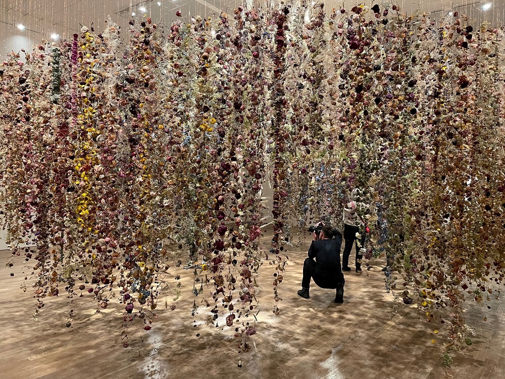 Die Ausstellung ist in acht Kapitel unterteilt, die von Ökologie über Mythologie, Religionen, Kunst und Wissenschaft, Kostbarkeit, Sprachen, Repräsentation und Widerstand bis zur abschließenden Installation aus Abertausenden getrockneten Blumen der Künstlerin Rebecca Louise Law reichen, zweifellos Höhe- und Endpunkt der Ausstellung, visuell und olfaktorisch. Denn Blumen wurden nicht nur wegen ihrer Schönheit wertgeschätzt, sie dienten als Symbol und als Inhaltsstoff für Parfüm seit ältester Zeit, sie wurden als Arznei verwendet und bei religiösen Kulten eingesetzt – schmücken wir nicht noch immer unsere Kirchen zur Hochzeit, trägt die Braut einen Brautkranz und wirft den Brautstrauß?