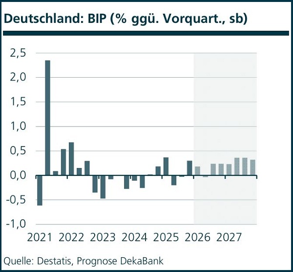 Nach dem erfreulichen Schlussquartal 2025, in dem das Bruttoinlandsprodukt um 0,3 Prozent im Vorquartalsvergleich zugenommen hatte, sah es zunächst nach einem schwachen Start in das neue Jahr aus.