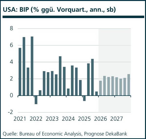 Die Marktreaktionen auf die Waffenruhe – der deutliche Rückgang des Ölpreises, die Aktienkursanstiege und die gesunkenen Anleiherenditen – sind verständlich, sollten aber nicht darüber hinwegtäuschen, dass die Lage unsicher bleibt. Zudem hat die Weltwirtschaft durch den Krieg Schaden genommen, und die Aufräumarbeiten, sollte der Krieg wirklich weitgehend beendet sein, werden noch längere Zeit in Anspruch nehmen. Bis ein ansatzweise normaler Schiffsverkehr durch die Straße von Hormus gewährleistet sein wird und bis die Öl- und Gasförderanlagen wieder repariert bzw. hochgefahren sein werden, wird das globale Wachstum gebremst bleiben. Immerhin, trotz der Widrigkeiten dürfte die Weltwirtschaft in diesem und im kommenden Jahr um rund 3 Prozent wachsen.