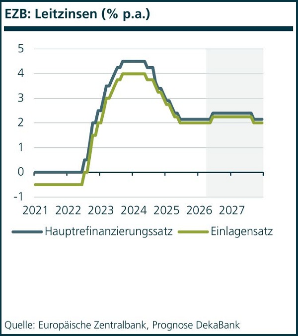 anderweitige Verpflichtung gedacht. Sie ersetzen keine (Rechts- und / oder Steuer-) Beratung. Auch die Übersendung dieser Darstellungen stellt keine derartige beschriebene Beratung dar. Alle Angaben wurden sorgfältig recherchiert und zusammengestellt. Die hier abgegebenen Einschätzungen wurden nach bestem Wissen und Gewissen getroffen und stammen aus oder beruhen (teilweise) auf von uns als vertrauenswürdig erachteten, aber von uns nicht überprüfbaren, allgemein zugänglichen Quellen. Eine Haftung für die Vollständigkeit, Aktualität und Richtigkeit der gemachten Angaben und Einschätzungen, einschließlich der rechtlichen Ausführungen, ist ausgeschlossen. Die enthaltenen Meinungsaussagen geben die aktuellen Einschätzungen der DekaBank zum Zeitpunkt der Erstellung wieder, die sich jederzeit ohne vorherige Ankündigung ändern können. Jeder Empfänger sollte eine eigene unabhängige Beurteilung, eine eigene Einschätzung und Entscheidung vornehmen. Insbesondere wird jeder Empfänger aufgefordert, eine unabhängige Prüfung vorzunehmen und/oder sich unabhängig fachlich beraten zu lassen und seine eigenen Schlussfolgerungen im Hinblick auf wirtschaftliche Vorteile und Risiken unter Berücksichtigung der rechtlichen, regulatorischen, finanziellen, steuerlichen und bilanziellen Aspekte zu ziehen. Sollten Kurse/Preise genannt sein, sind diese freibleibend und dienen nicht als Indikation handelbarer Kurse/Preise. Bitte beachten Sie: Die frühere Wertentwicklung sowie die prognostizierten Entwicklungen sind keine verlässlichen Indikatoren für die künftige Wertentwicklung. Diese Informationen inklusive Einschätzungen dürfen weder in Auszügen noch als Ganzes ohne schriftliche Genehmigung durch die DekaBank vervielfältigt oder an andere Personen weitergegeben werden.