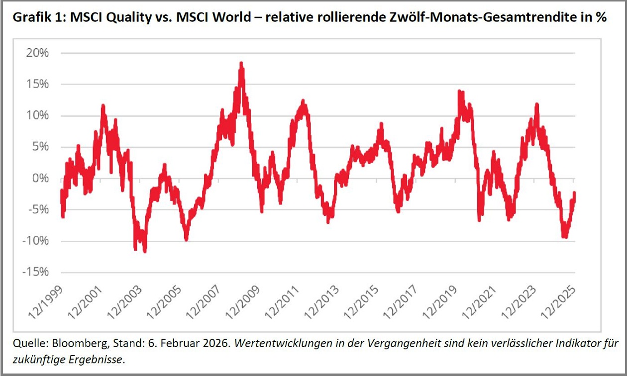 In diesem Umfeld wird es zunehmend riskant, darauf zu vertrauen, dass sich historische Qualitätsmerkmale auszahlen. Geschäftsmodelle, die einst als nahezu immun gegen Disruption galten – etwa solche auf Basis von geistigem Eigentum oder wiederkehrenden Umsätzen – werden heute infrage gestellt. Das Label „Qualität“ sagt viel über die Vergangenheit eines Unternehmens aus, aber deutlich weniger darüber, ob es sich anpassen kann – und zu welchem Preis sich ein Investment noch lohnt.