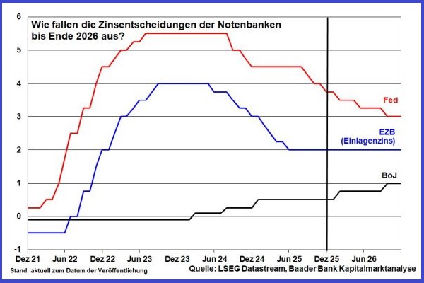 Fed, EZB und BoJ bis Ende 2026 aus?