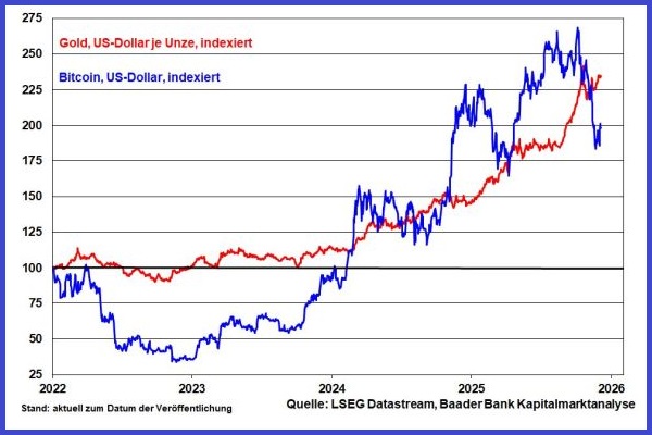 Grafik 12: Bitcoin und Gold seit 2022, indexiert