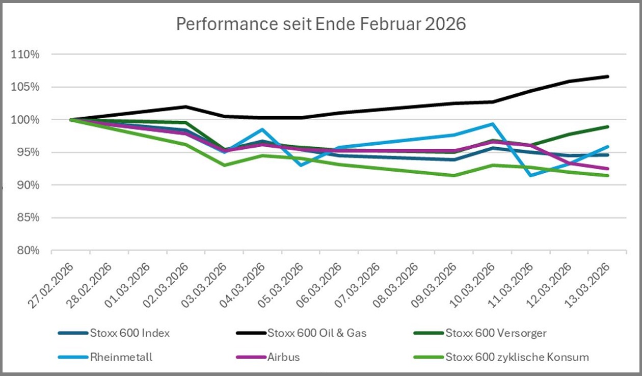 Diese optimistischen Annahmen stehen nun jedoch erheblich infrage. Der Krieg im Nahen Osten und die Schließung der Straße von Hormus haben dazu geführt, dass rund 20 Prozent der globalen Öl- und Gasproduktion für importierende Länder zumindest kurzfristig nicht verfügbar ist. Die stark gestiegenen Energiepreise treffen die Weltwirtschaft und besonders Europa aufgrund der hohen Energieabhängigkeit hart. Die Sorge vor einem erneuten Inflationsschock – ähnlich wie 2022 – macht sich unter Investoren breit.