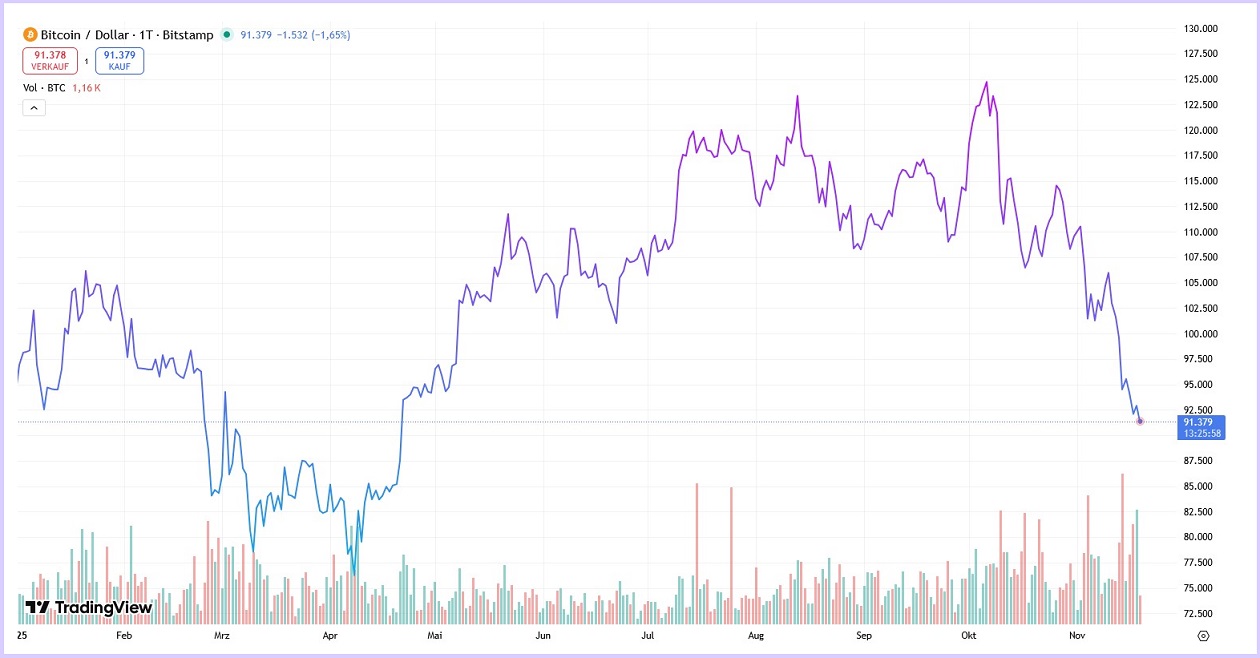 Jüngste Kommentare der Fed – konkret gaben diese Hinweise, dass die nächsten Zinssenkungen möglicherweise verschoben werden, weil die Inflation noch nicht ausreichend unter Kontrolle ist – haben die erwartete Wahrscheinlichkeit einer Lockerung im Dezember von 95 auf 46 Prozent halbiert. Das führt zu einem spürbar niedrigerem Risikoappetit, denn teurere Liquidität macht sichere Anlagen attraktiver und trifft spekulativere Sektoren wie Krypto besonders hart.