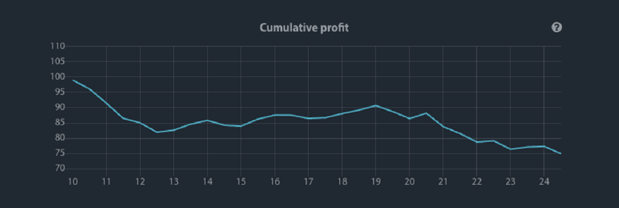 Darüber hinaus bestätigt die kumulative Gewinnkurve von Seasonax für diesen Zeitraum das Risiko für Microsoft. Die kumulative Renditekurve zeigt die Erträge, die erzielt worden wären, hätte man Microsoft über die letzten 14 Jahre immer genau in diesem Zeitfenster gehalten – und das Bild zeigt eindeutig einen Abwärtstrend.