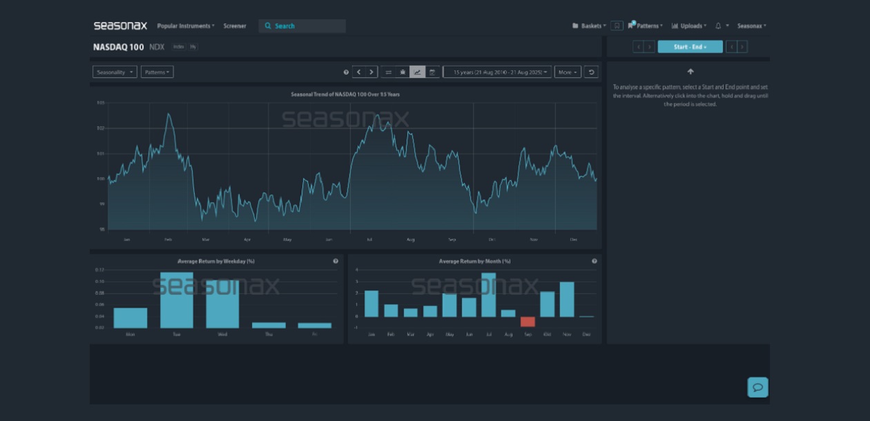 Saisonaler Chart des NASDAQ-100-Index über 15 Jahre