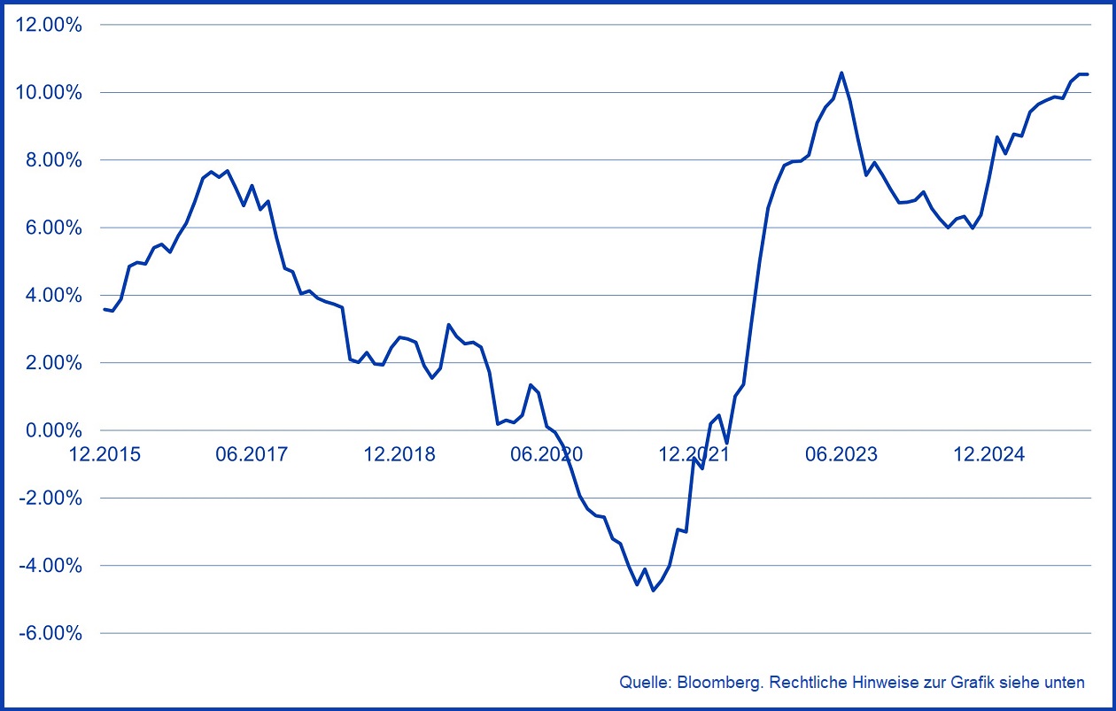 Auch China gewinnt heute wieder an Glanz zurück. Nach einer geplatzten Immobilienblase waren die Aussichten für die zweitgrößte Volkswirtschaft der Welt in den vergangenen Jahren verhalten. Zwar bleibt die Situation weiterhin komplex, jedoch gibt es erste Anzeichen für eine Stabilisierung: Die Immobilienpreise haben erheblich korrigiert, und der Bestand an unverkauften Immobilien geht langsam zurück. Eine solche Entwicklung hat sich schon öfter als positiver Frühindikator für eine Erholung in den kommenden Jahren erwiesen. Zwar könnten die Preise 2026 auch weiter sinken, während der Markt diese Ungleichgewichte abbaut. Es besteht allerdings auch das Potenzial, dass sich der Immobilienmarkt bis 2027 stabilisiert – und das kann wiederum eine solidere Grundlage für künftiges Wirtschaftswachstum bieten.