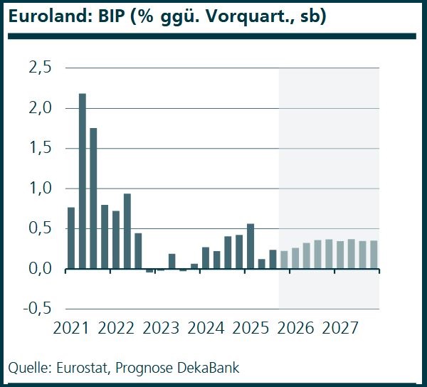 Im vierten Quartal 2025 dürfte Euroland (EWU) auf Wachstumskurs bleiben. Dies deuten die Frühindikatoren für Oktober und November an. Mit einer spürbaren Zunahme der Wachstumsdynamik ist aber nicht zu rechnen. Dennoch