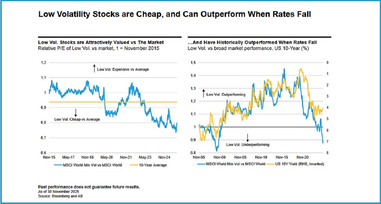 Zwar bedeuten hohe Bewertungen nicht zwangsläufig schwache kurzfristige Renditen. Sie erhöhen jedoch das Risiko für größere Rückschläge. Die hohe Markt¬konzentration spricht für Diversifikation. Defensivere Aktienstrategien wie Low-Volatility-Ansätze bieten attraktive Bewertungen und könnten bei fallenden Renditen Rückenwind erhalten. Auch Schwellenländer wirken gut positioniert – unterstützt durch sinkende lokale Zinsen, steigende Gewinne und einen möglicherweise schwächeren US-Dollar. Diese Kombination ermöglicht Income-Potenzial bei gleichzeitigem Abbau von Konzentrationsrisiken (Grafik 2)
